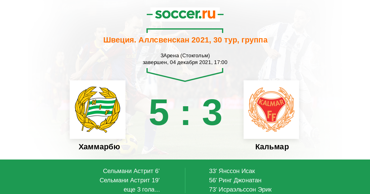 Протокол матча Хаммарбю против Кальмар