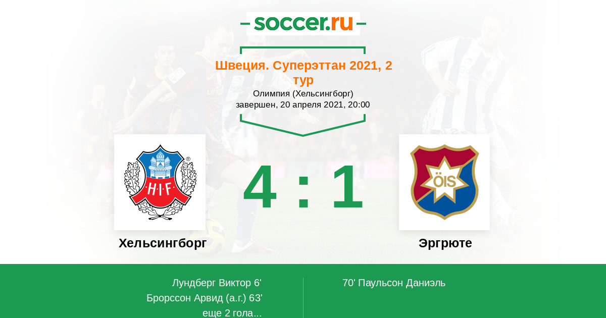 63' (2:0) Автогол Брорссон Арвид (23)