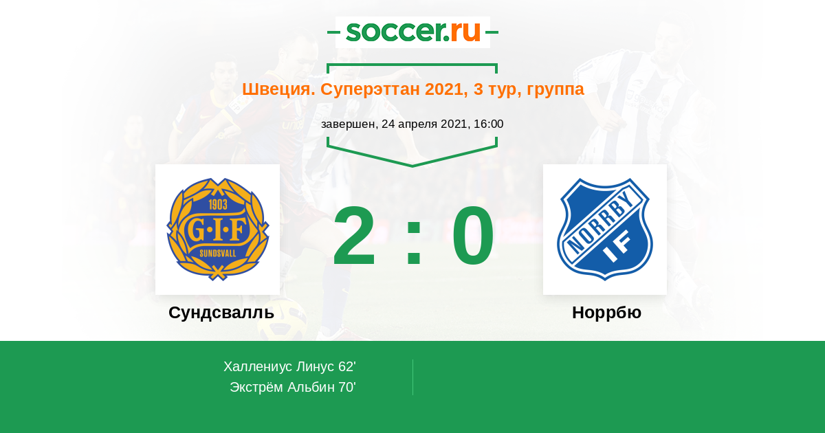 62' (1:0) Халлениус Линус (9) (Стенссон Даниэль (6))