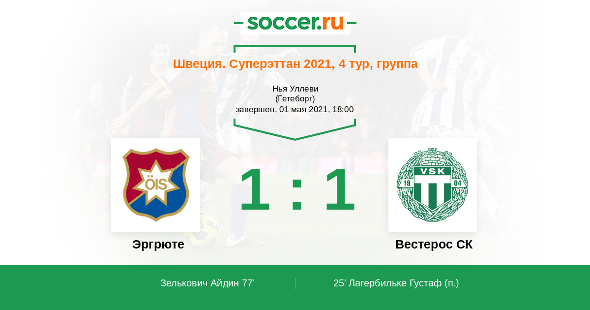 Протокол матча Эргрюте против Вестерос СК