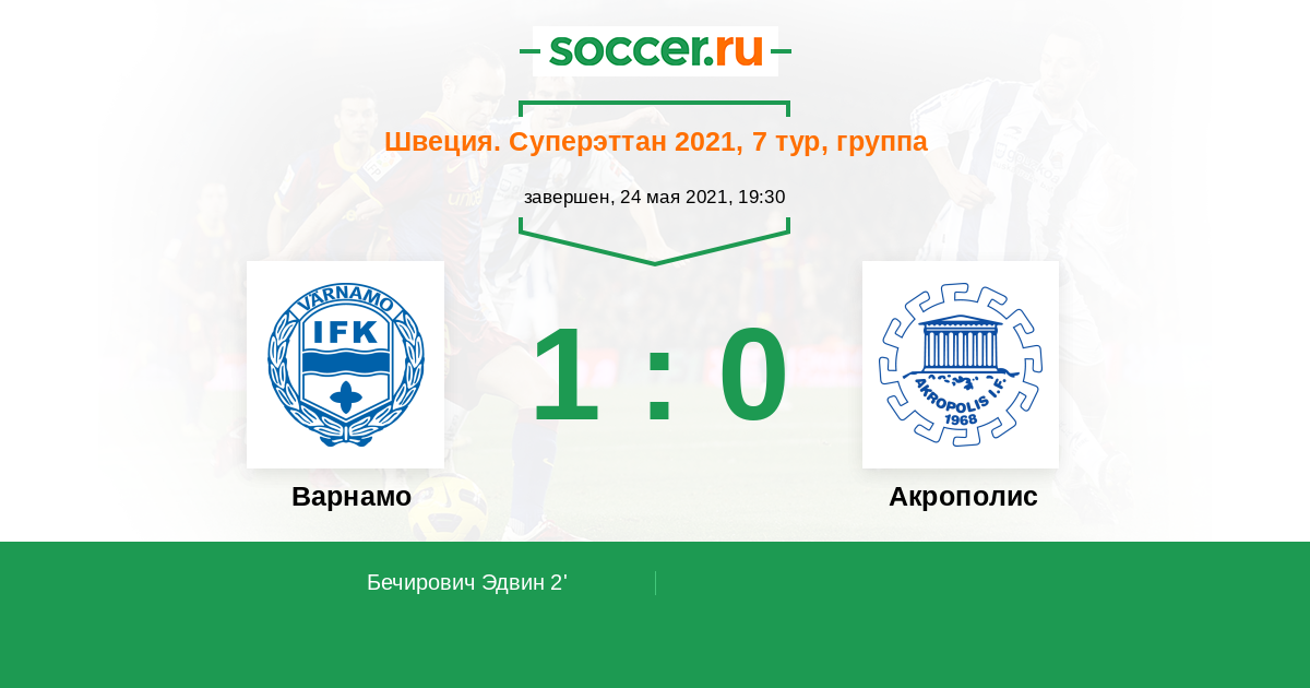 Протокол матча Варнамо против Акрополис