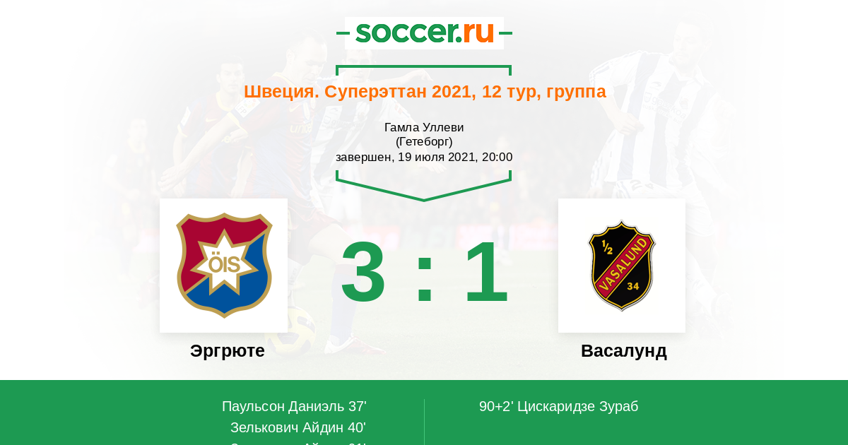 Протокол матча Эргрюте против Васалунд