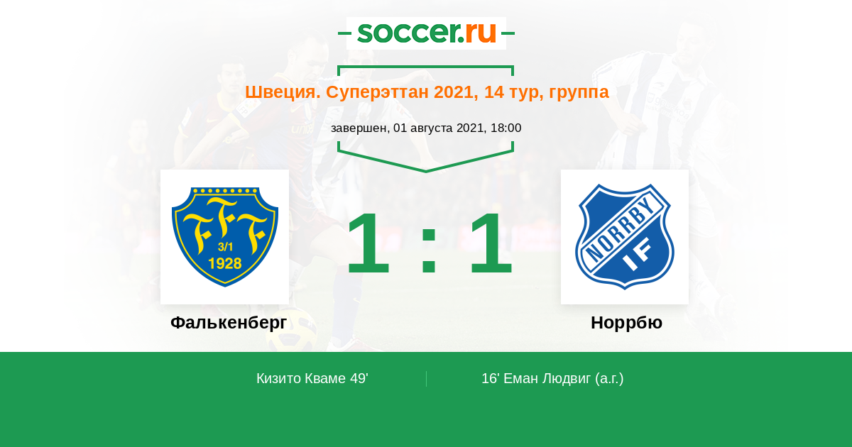Протокол матча Фалькенберг против Норрбю