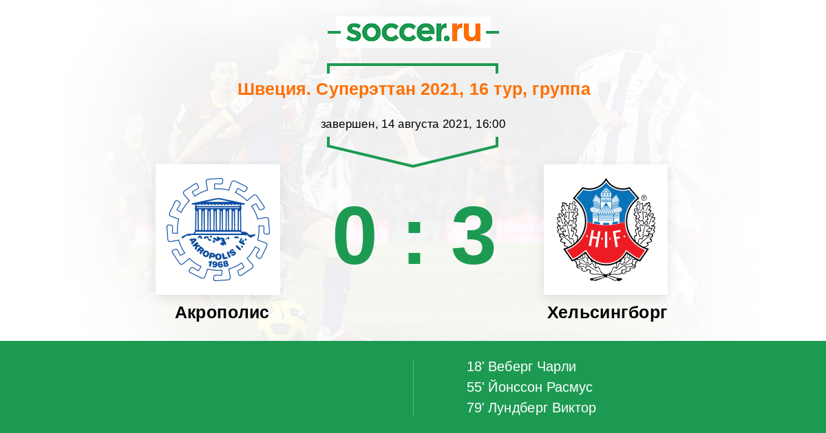 Протокол матча Акрополис против Хельсингборг