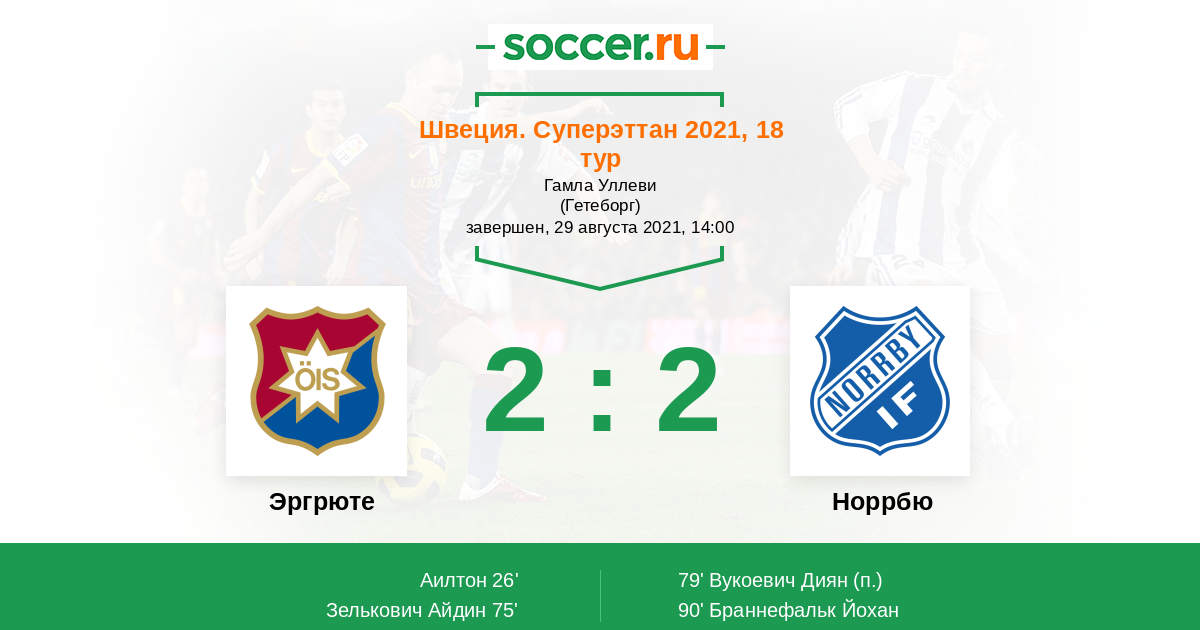 Протокол матча Эргрюте против Норрбю