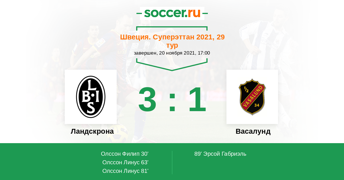 Протокол матча Ландскрона против Васалунд