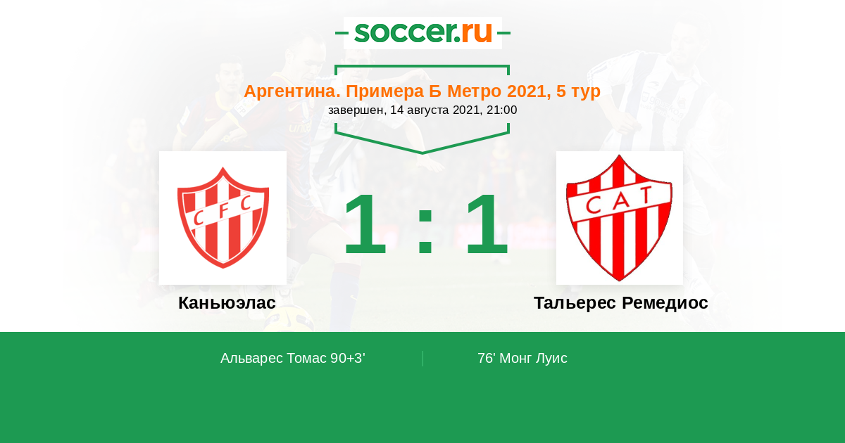 Протокол матча Каньюэлас против Тальерес Ремедиос