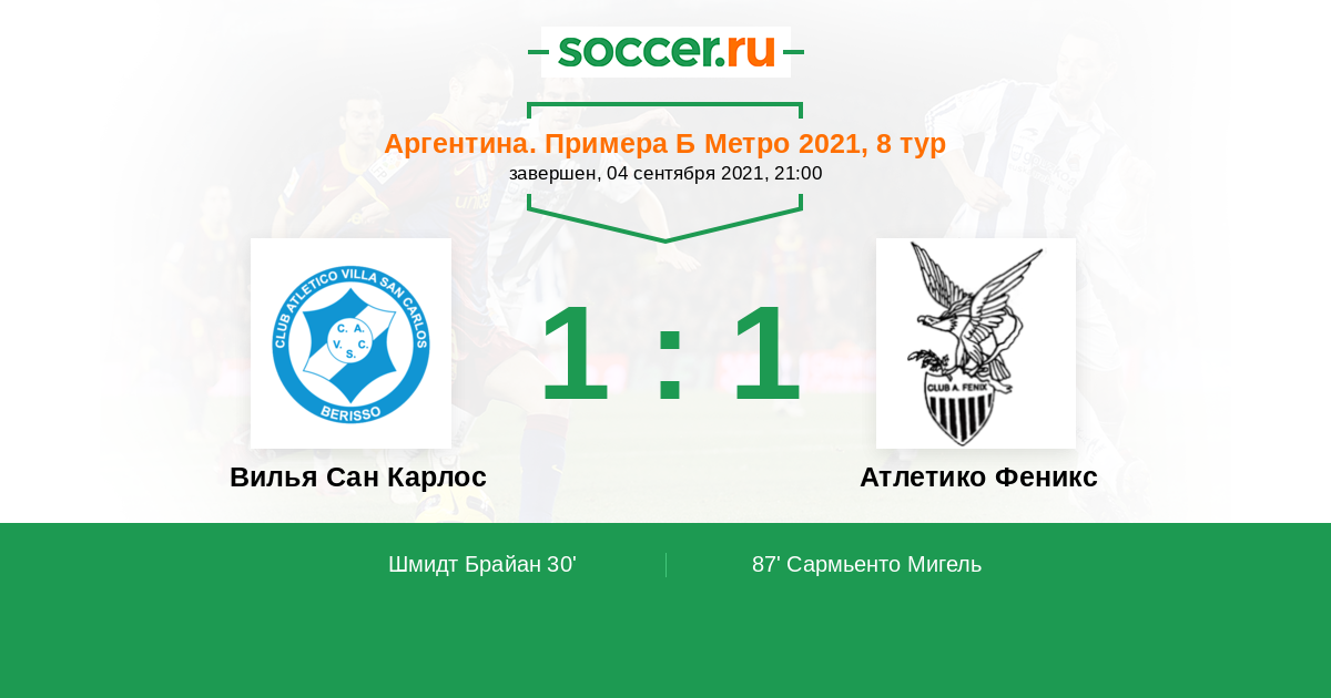Протокол матча Вилья Сан Карлос против Атлетико Феникс