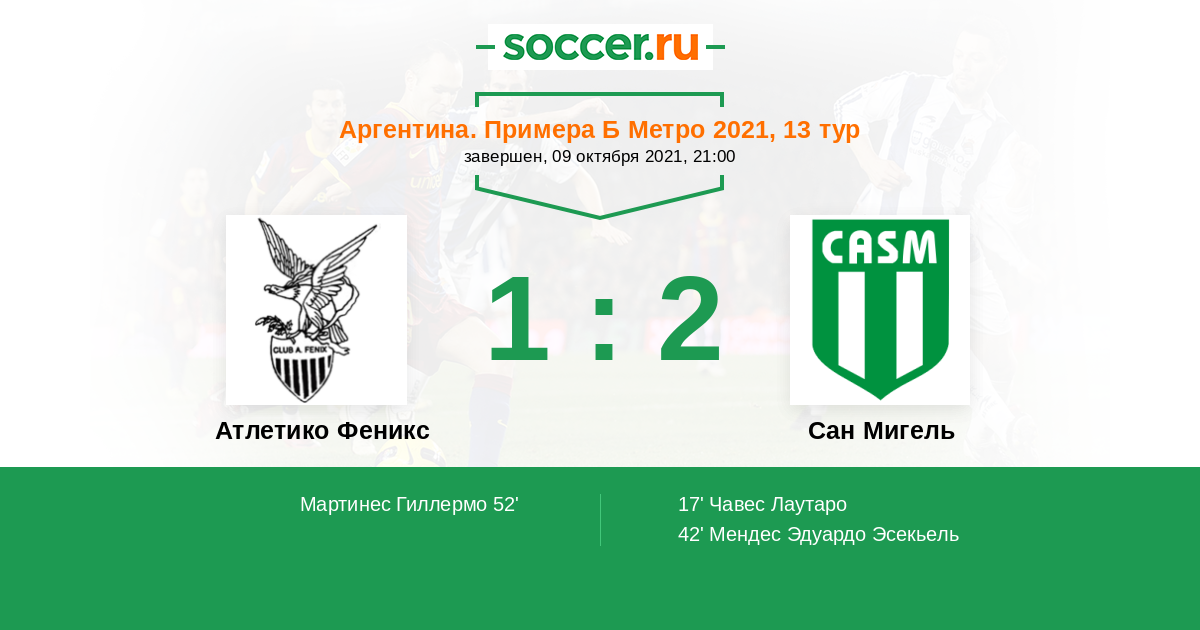 Протокол матча Атлетико Феникс против Сан Мигель