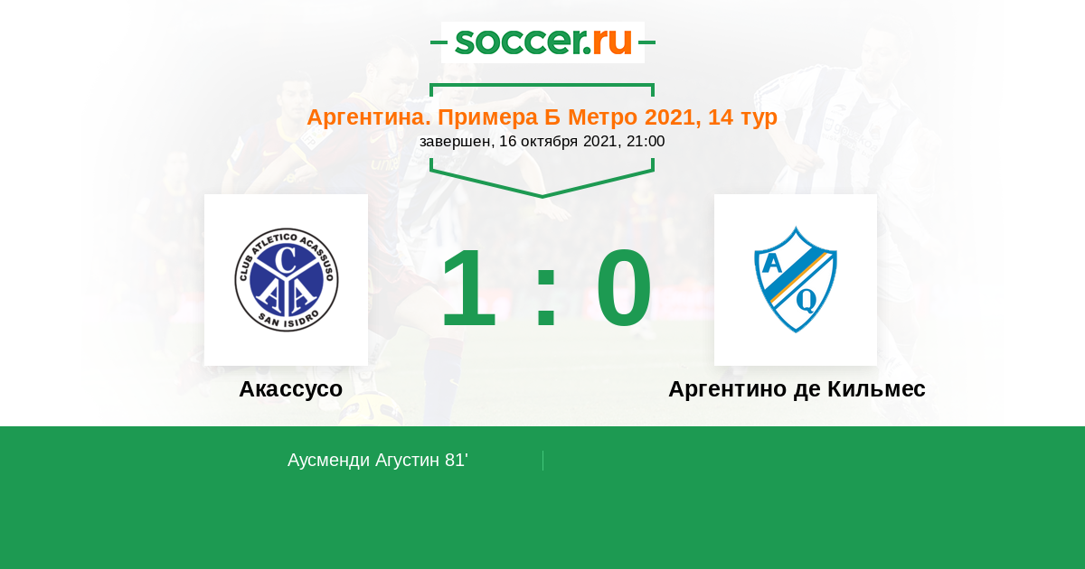 Протокол матча Акассусо против Аргентино де Кильмес