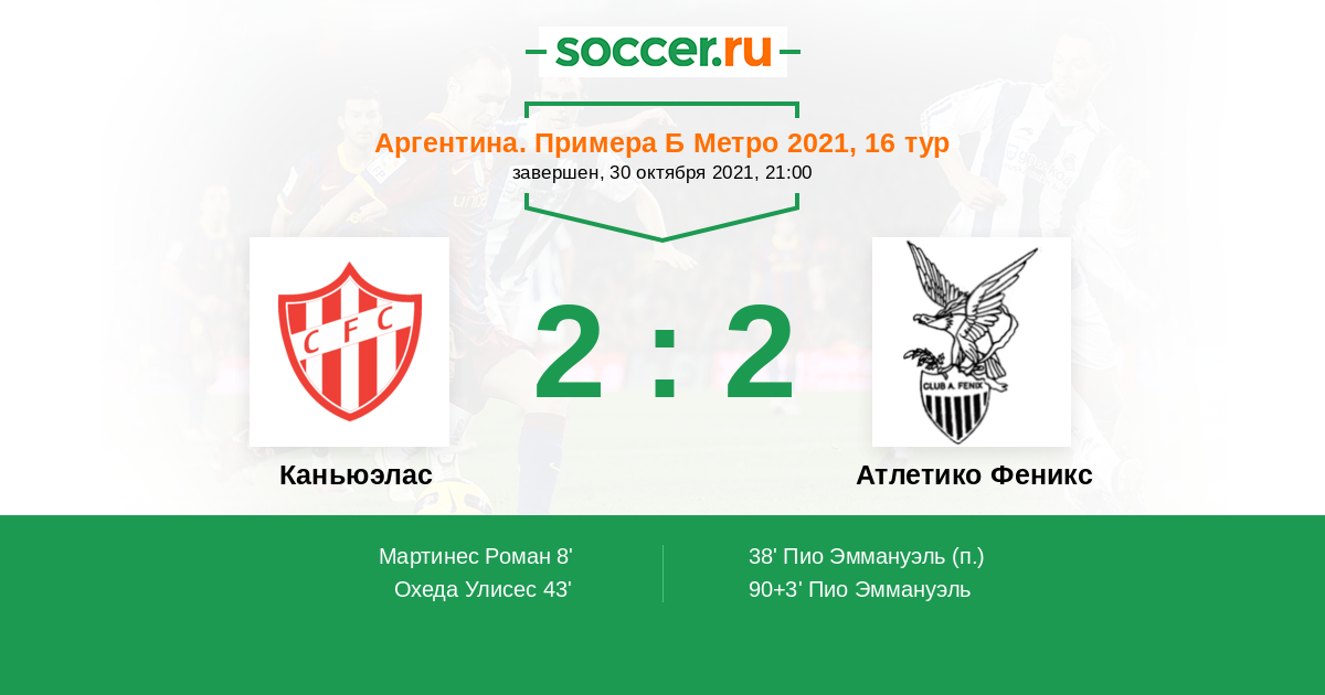 Протокол матча Каньюэлас против Атлетико Феникс