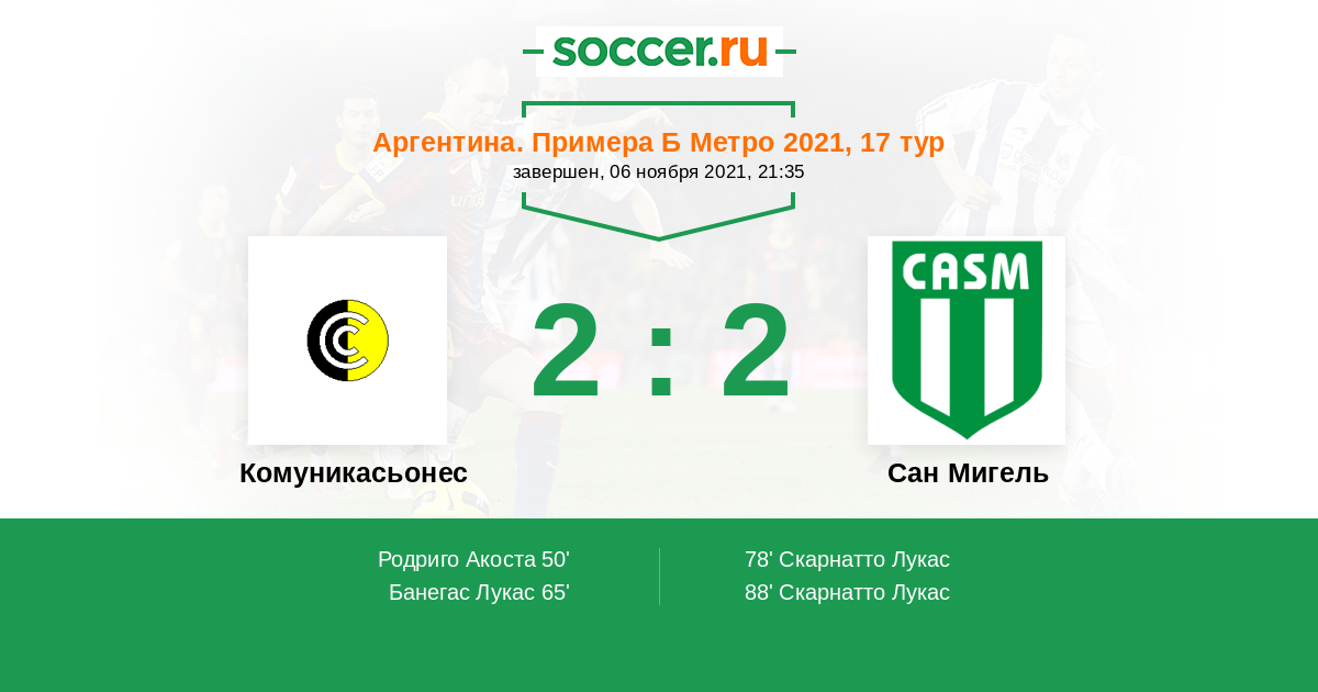 Протокол матча Комуникасьонес против Сан Мигель