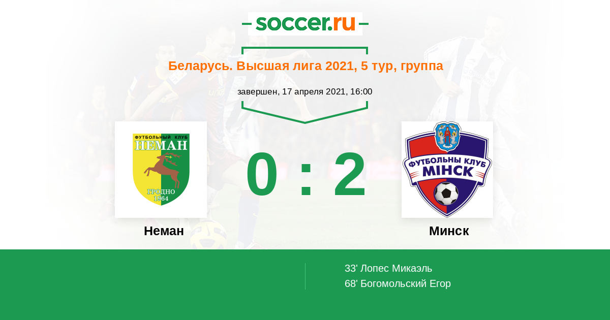 Протокол матча Неман против Минск