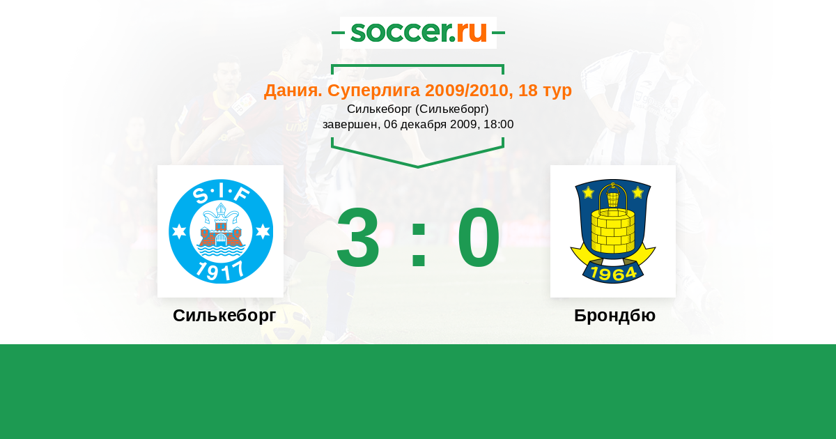 Дания. Суперлига 27.09.2009 Силькеборг Логотип футбольный клуб Силькеборг 4:1 Логотип футбольный клуб Брондбю (Брённбю) Брондбю