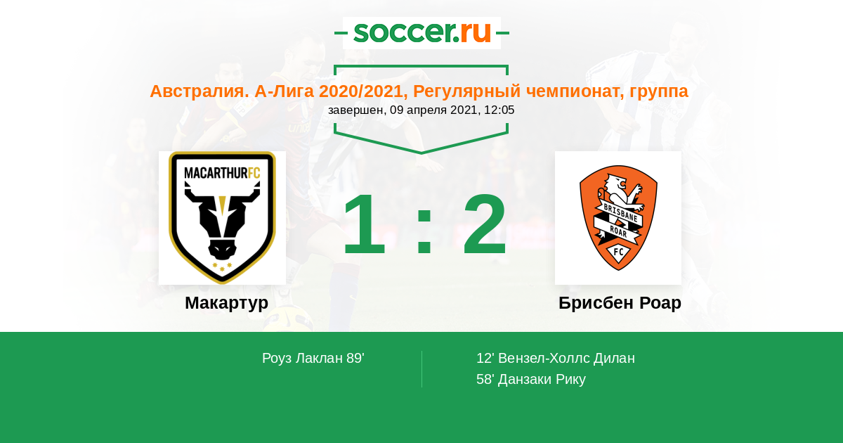 Протокол матча Макартур против Брисбен Роар