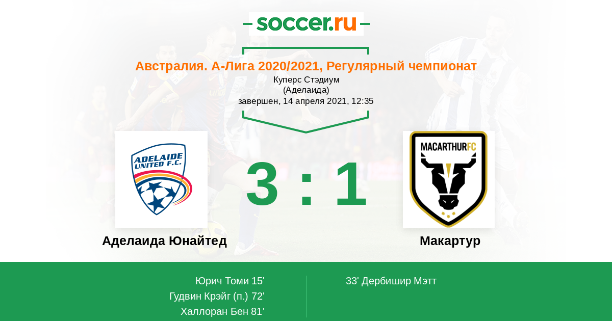 Протокол матча Аделаида Юнайтед против Макартур