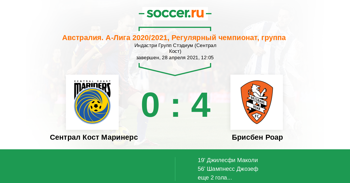 Протокол матча Сентрал Кост Маринерс против Брисбен Роар