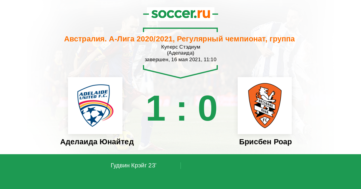 Протокол матча Аделаида Юнайтед против Брисбен Роар