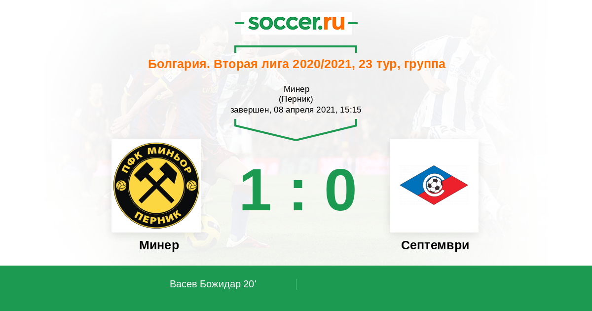Протокол матча Минер против Септември