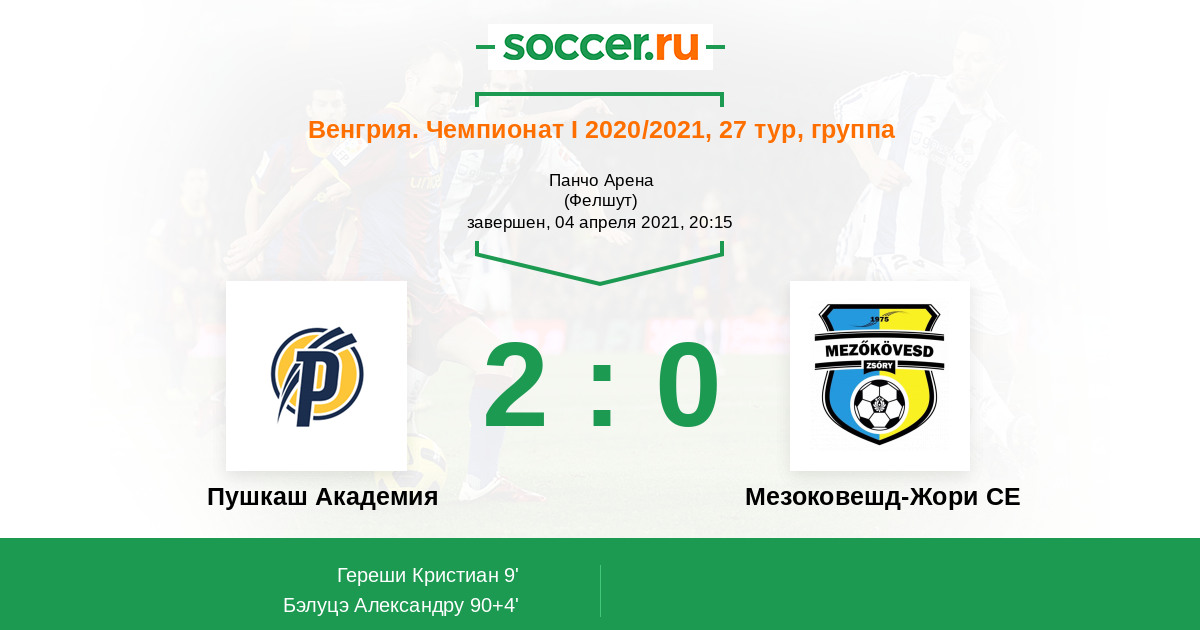 Протокол матча Пушкаш Академия против Мезоковешд-Жори СЕ