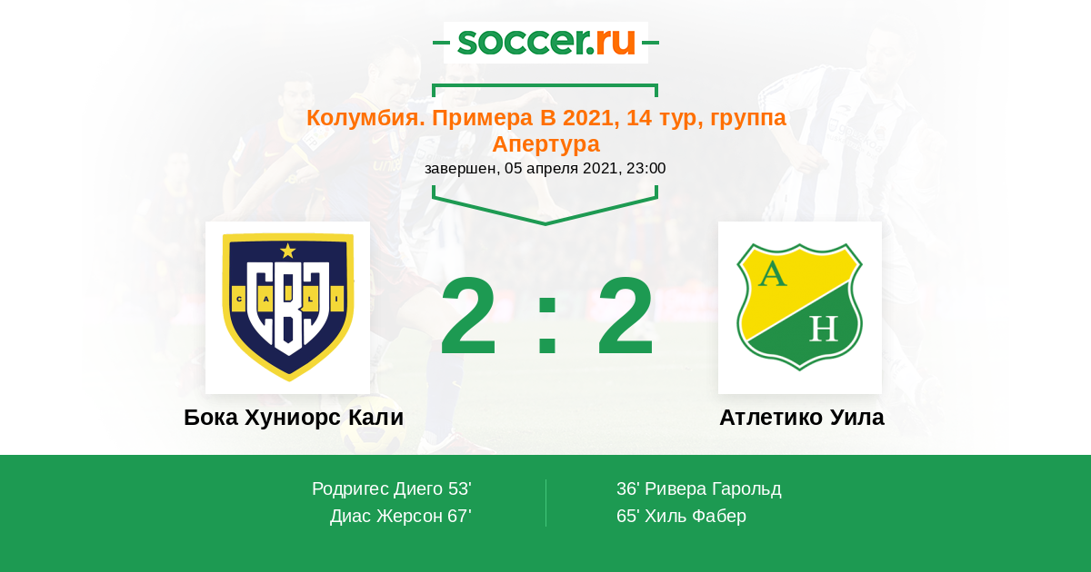 Протокол матча Бока Хуниорс Кали против Атлетико Уила