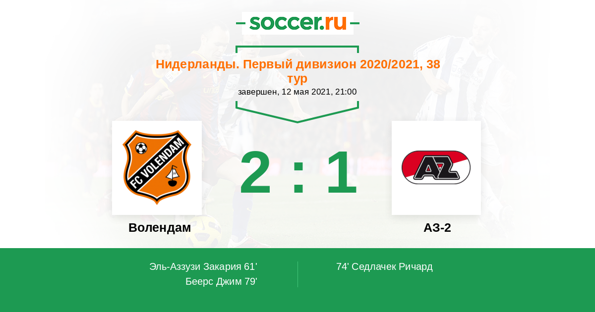 Протокол матча Волендам против АЗ-2