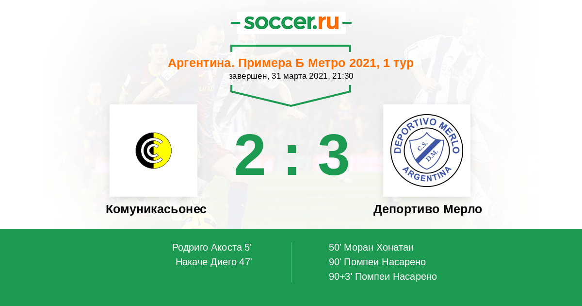 Протокол матча Комуникасьонес против Депортиво Мерло