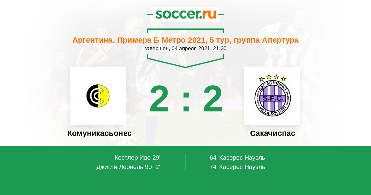 Протокол матча Комуникасьонес против Сакачиспас