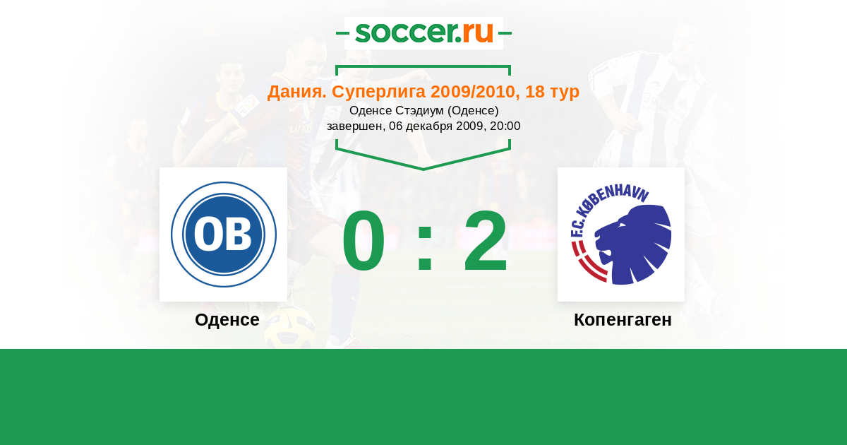 Дания. Суперлига 12.09.2009 Оденсе Логотип футбольный клуб Оденсе 1:1 Логотип футбольный клуб Копенгаген Копенгаген
