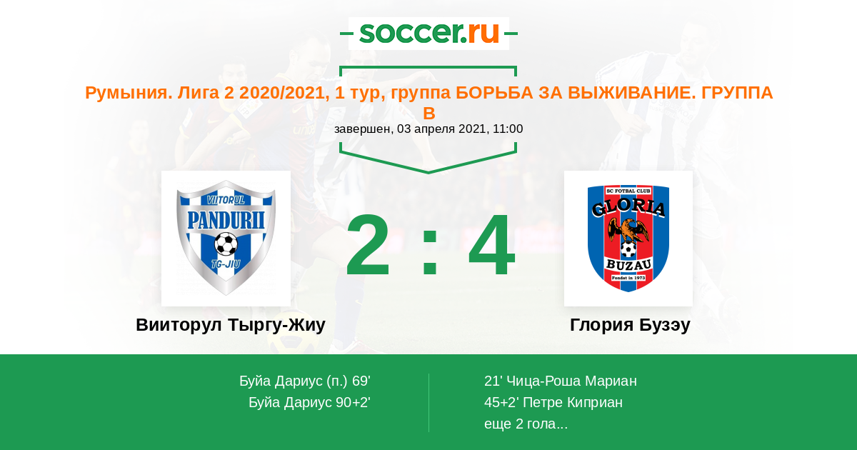 Протокол матча Вииторул Тыргу-Жиу против Глория Бузау