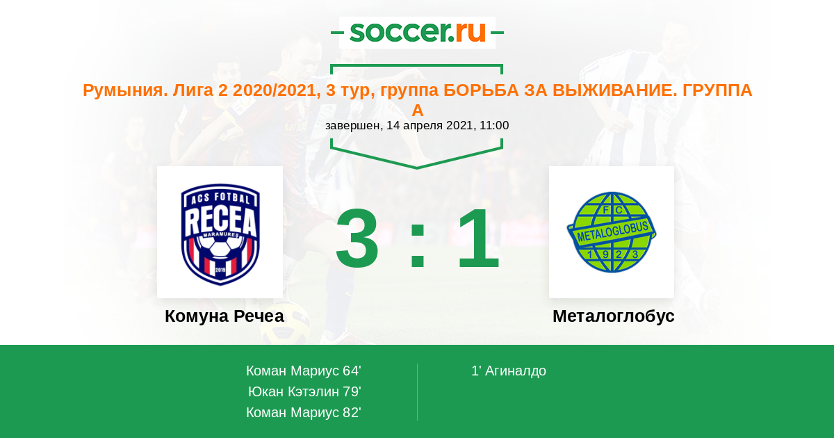 Протокол матча Комуна Речеа против Металоглобус