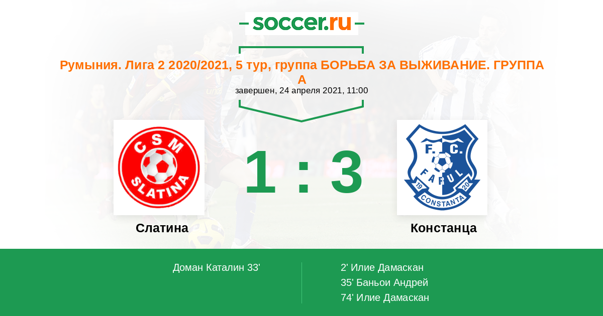 Протокол матча Слатина против Фарул