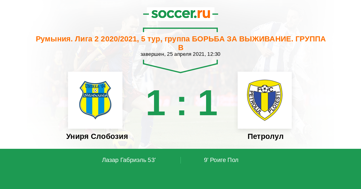 Протокол матча Униря Слобозия против Петролул