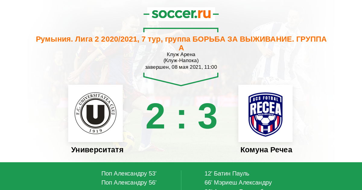 Протокол матча Университатя Клуж против Комуна Речеа