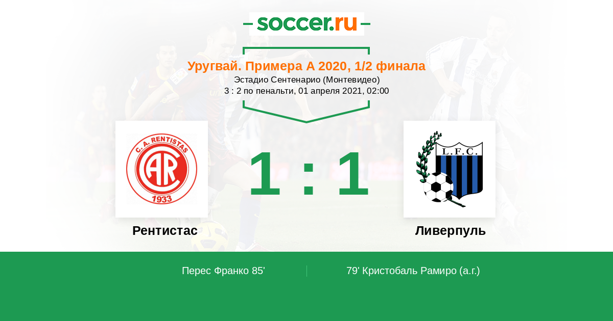 Протокол матча Рентистас против Ливерпуль