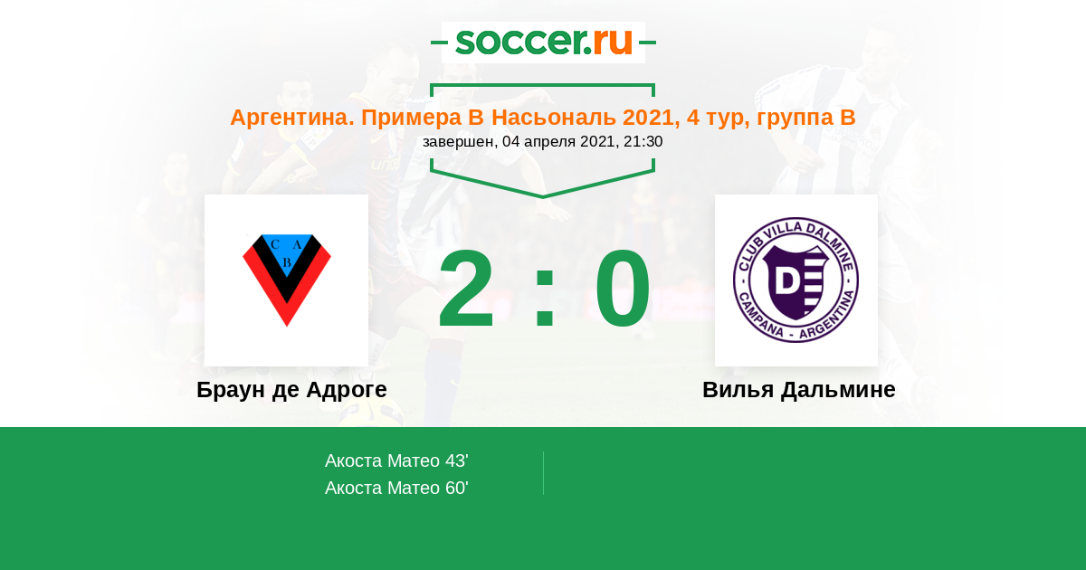 Протокол матча Браун де Адроге против Вилья Дальмине