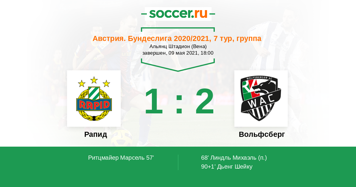Протокол матча Рапид против Вольфсберг
