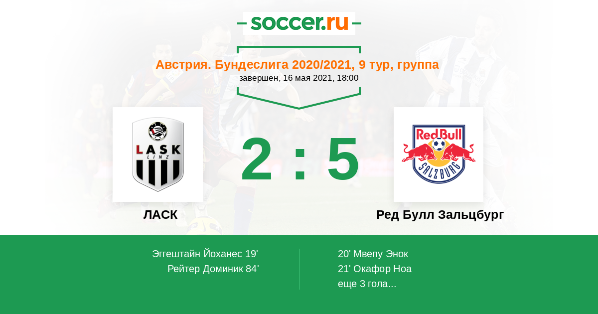 Протокол матча ЛАСК против Ред Булл Зальцбург