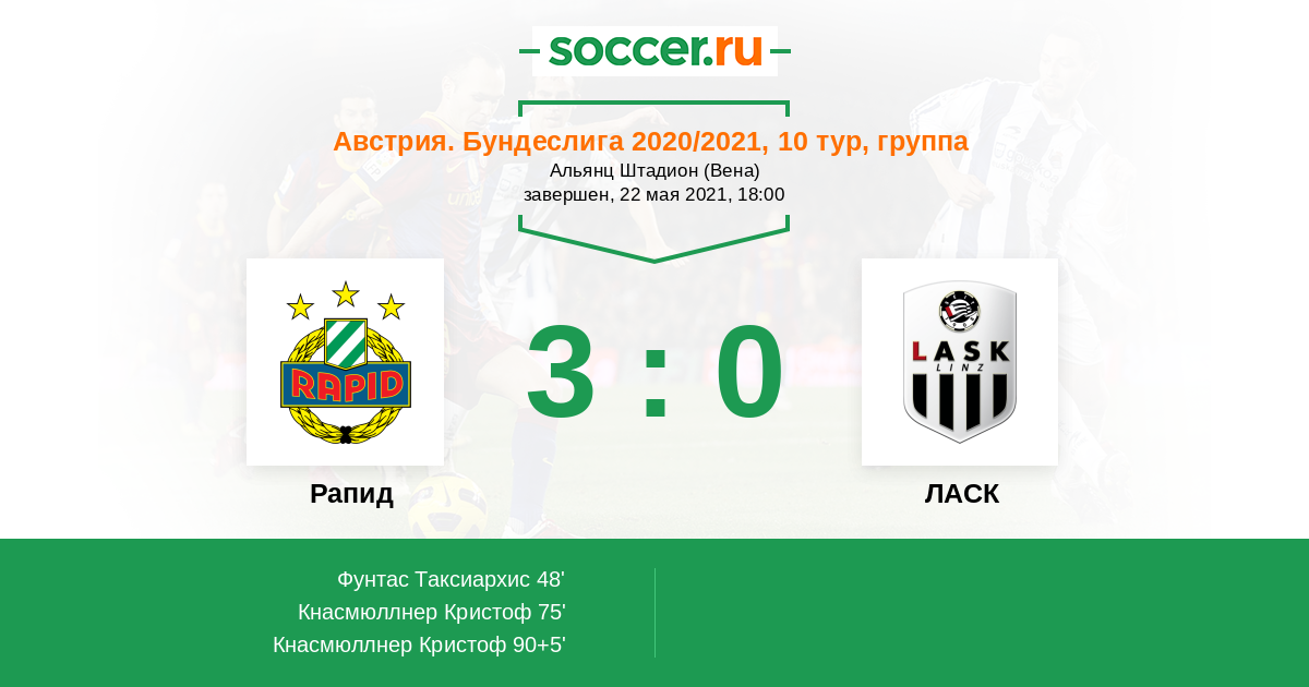 Протокол матча Рапид против ЛАСК