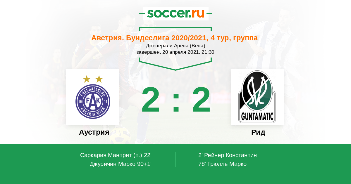 Протокол матча Аустрия против Рид