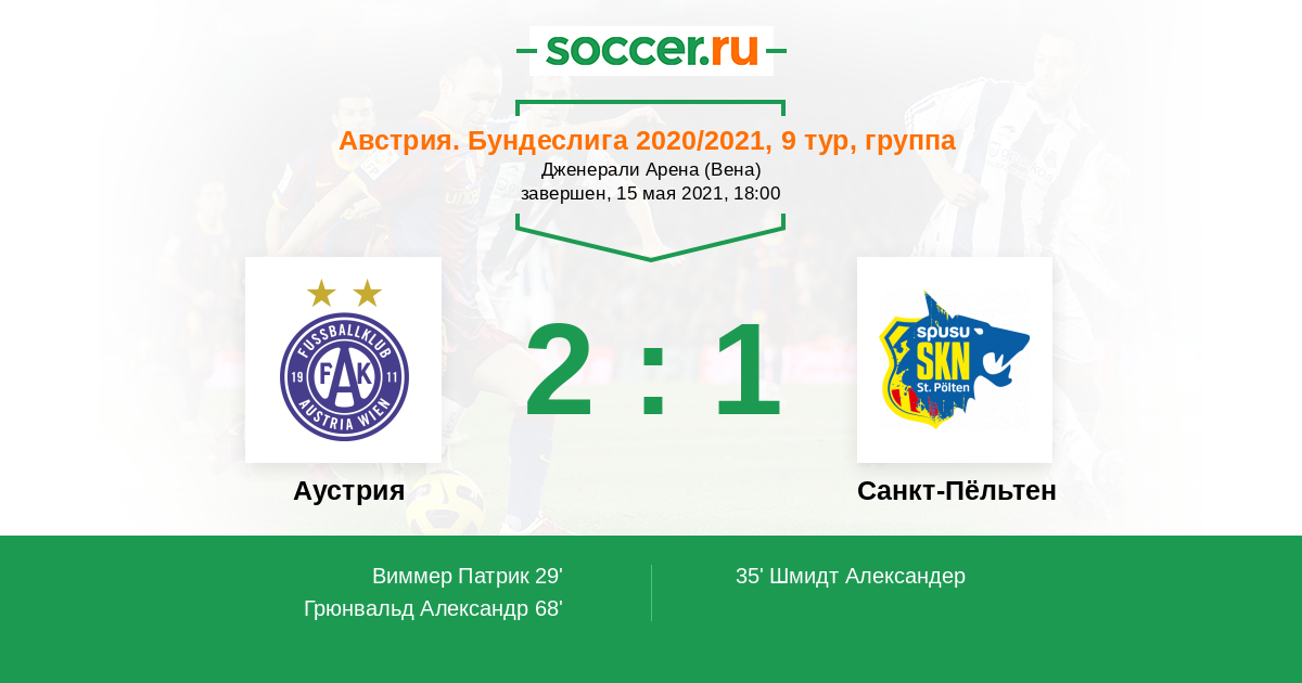 Протокол матча Аустрия против Санкт-Пёльтен