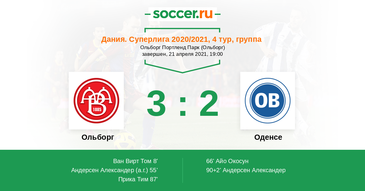 Протокол матча Ольборг против Оденсе