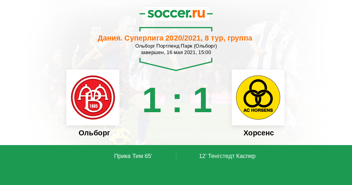 Протокол матча Ольборг против Хорсенс