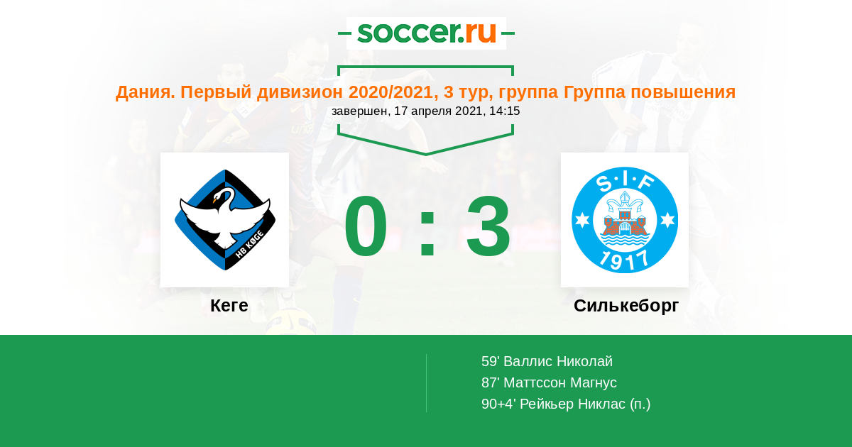 Протокол матча Кеге против Силькеборг