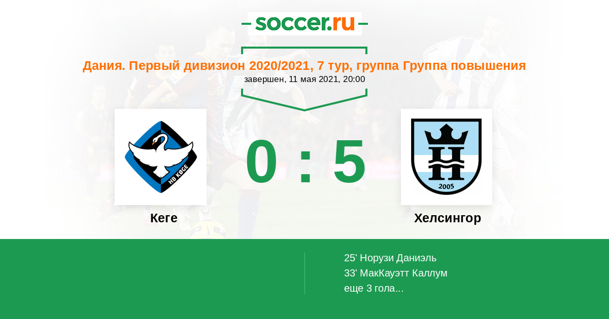 Протокол матча Кеге против Хелсингор