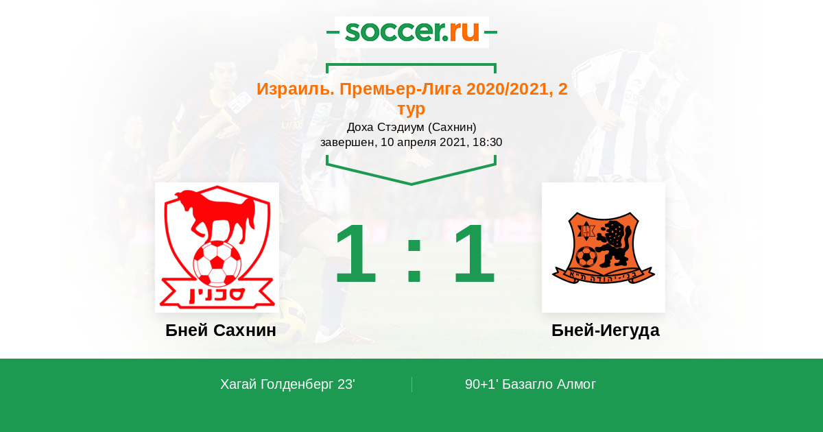 Протокол матча Бней Сахнин против Бней-Иегуда