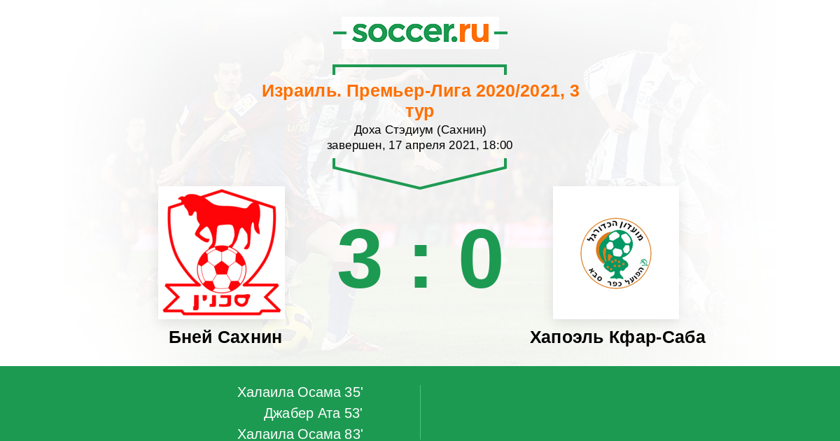 Протокол матча Бней Сахнин против Хапоэль Кфар-Саба
