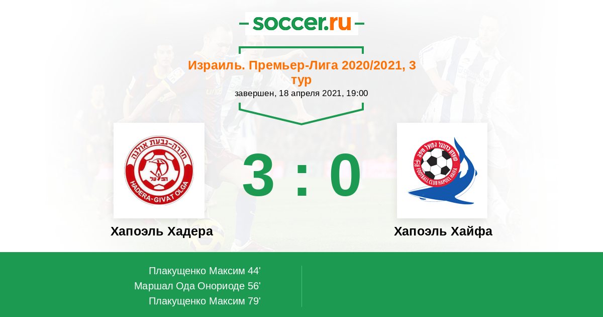 Протокол матча Хапоэль Хадера против Хапоэль Хайфа