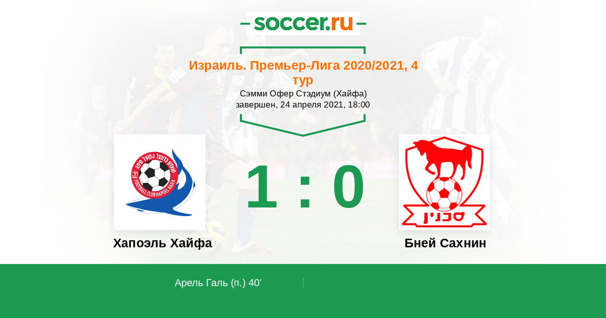Протокол матча Хапоэль Хайфа против Бней Сахнин