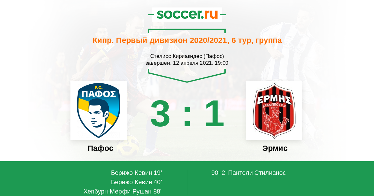 Протокол матча Пафос против Эрмис